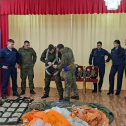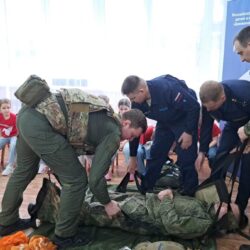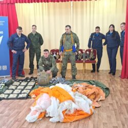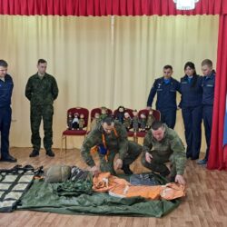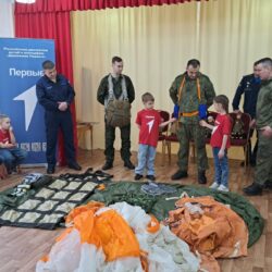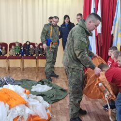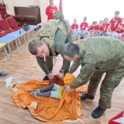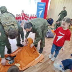 Но самое интересное ждало ребят впереди! Военнослужащие привезли с собой настоящие армейские атрибуты: дети смогли примерить бронежилет, потрогать парашют и даже узнать, как оказать первую помощь раненому лётчику. А чтобы показать, как обеспечивается безопасность в экстремальных ситуациях, ребятам продемонстрировали спасательный плот и спасательный жилет, объяснив их назначение. Дошколята с интересом рассматривали эвакуационные носилки для раненых, представляя, как бережно они помогают доставить пострадавших в безопасное место. Особый восторг вызвала демонстрация работы спасательной радиостанции, предназначенной для связи с поисково-спасательными службами – дети смогли представить, как благодаря ей герои находят тех, кто нуждается в помощи. А когда на карте показали, какие уголки нашей необъятной страны облетели эти герои, восторгу не было предела! Оказалось, что лётчики побывали почти везде, и это вызвало у малышей неподдельное удивление и восхищение.